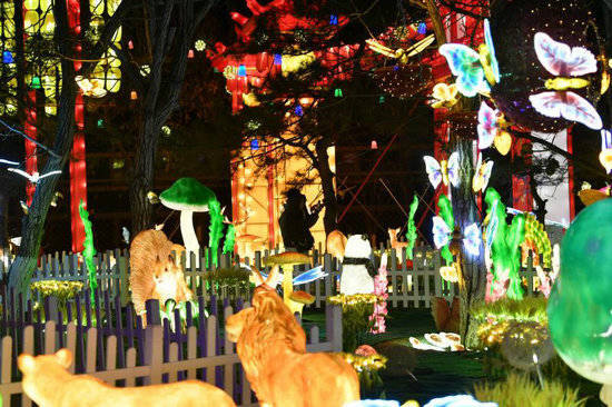 傍晚,乐园内热闹非凡。火热的安塞腰鼓扭起来、欢腾的“骏马”舞起来、绚烂的火龙钢花亮起来,游客们在惊喜中提前感受了春节的热闹气息。六大主题灯组从神话传说到梦幻雪景涵盖多种主题,敖丙、十二生肖等灯组吸引了小朋友们的目光。